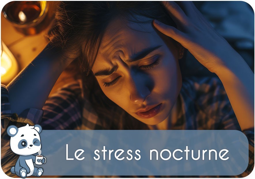 Le stress nocturne correspond à un état de tension physique et mentale qui survient principalement le soir ou pendant la nuit. Il se manifeste par une hyperactivité du cerveau, une agitation intérieure et parfois des symptômes physiques (palpitations, sueurs, respiration accélérée) qui empêchent de trouver le sommeil ou provoquent des réveils nocturnes.
